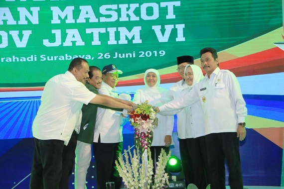 Min.co.id-Surabaya-Gubernur Jawa Timur, Khofifah Indar Parawansa secara resmi meluncurkan maskot dan logo Pekan Olahraga Provinsi (PORPROV) Jatim ke-VI Tahun 2019 yang akan berlangsung pada tanggal 6-13 Juli 2019 di empat kabupaten yakni Gresik, Lamongan, Tuban dan Bojonegoro. Peluncuran ini dilakukan di Gedung Negara Grahadi Surabaya, Rabu (26/6).