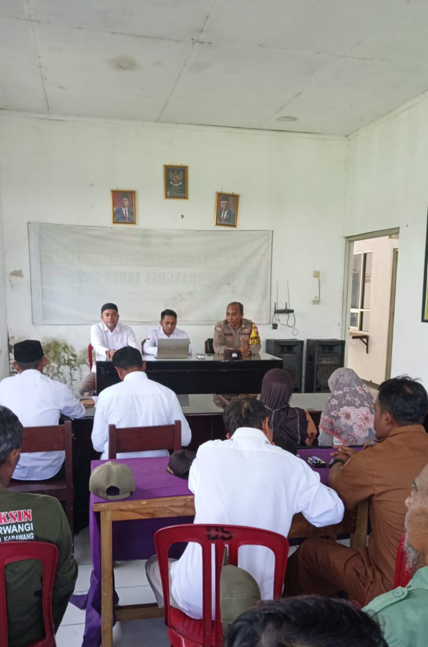 POLRES KARAWANG,- Polres Karawang Polda Jabar, Rapat Minggon Desa Sekarwangi dihadiri Anggota Polsek Rawamerta Polres Karawang, Bhabinkamtibmas Desa Sekarwangi Brigpol Kasih Parulian, kepala desa, para perangkat desa dan tokoh masyarakat, Kecamatan Rawamerta Karawang, Rabu 24 Mei 2023.