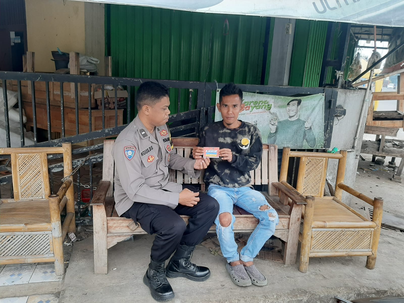 POLRES KARAWANG,- Guna maksimalkan pelayanan Bhabinkamtibmas Desa Cikampek Pusaka AIPDA AGUS DWI SANTOSO Sambang, Silaturahmi Kepada warga binaan sambil bincang-bincang lebih dekat sebagai Polisi Caket serta Penyampaian Pesan Kamtibmas sembari sosialisasi sticker lapor Pak Kapolres Karawang.