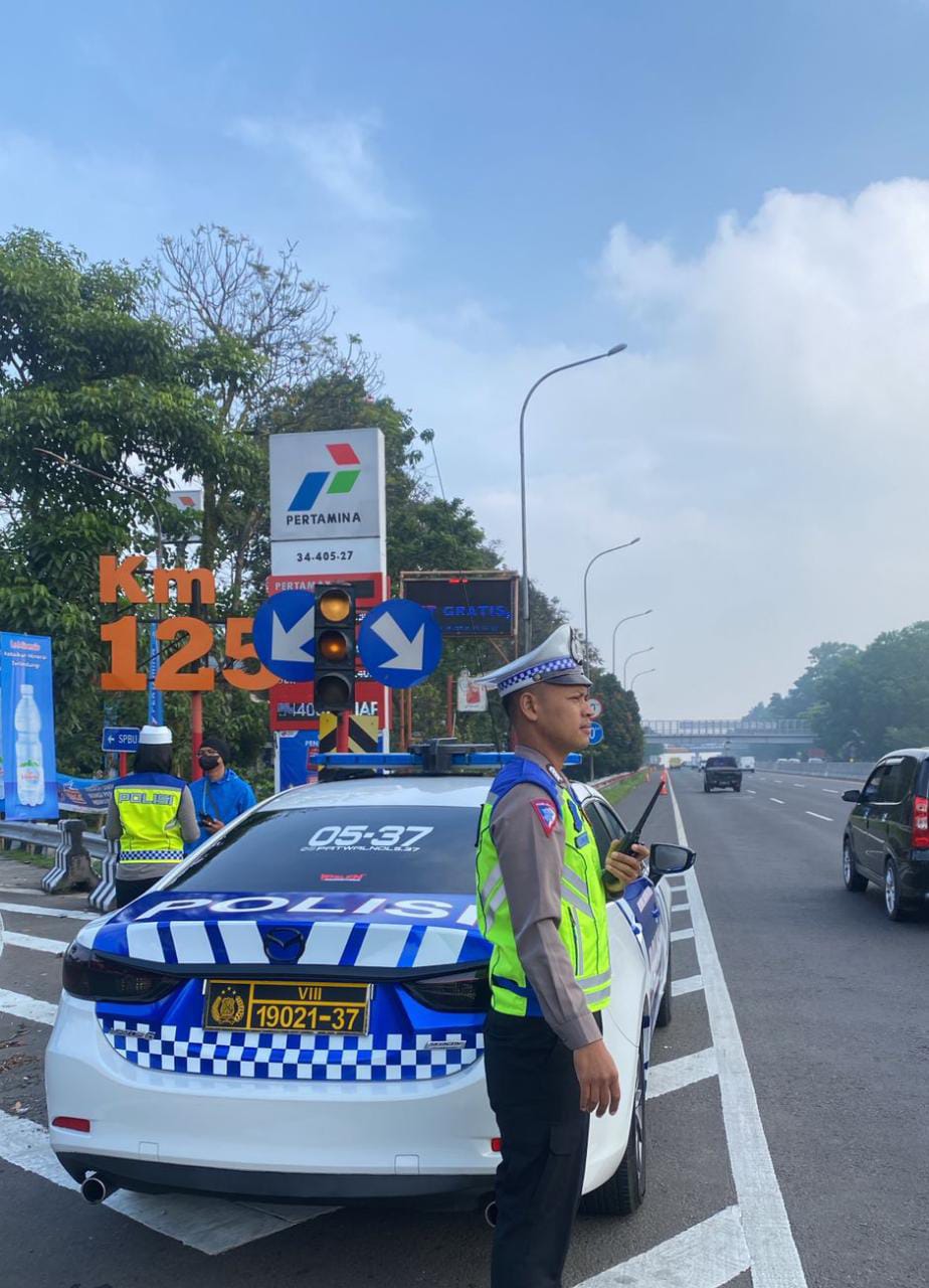 Pemantauan arus laulintas intens dilaksanakan anggota Sat Lantas Polres Cimahi di Jalan tol cipularang arah Jakarta.