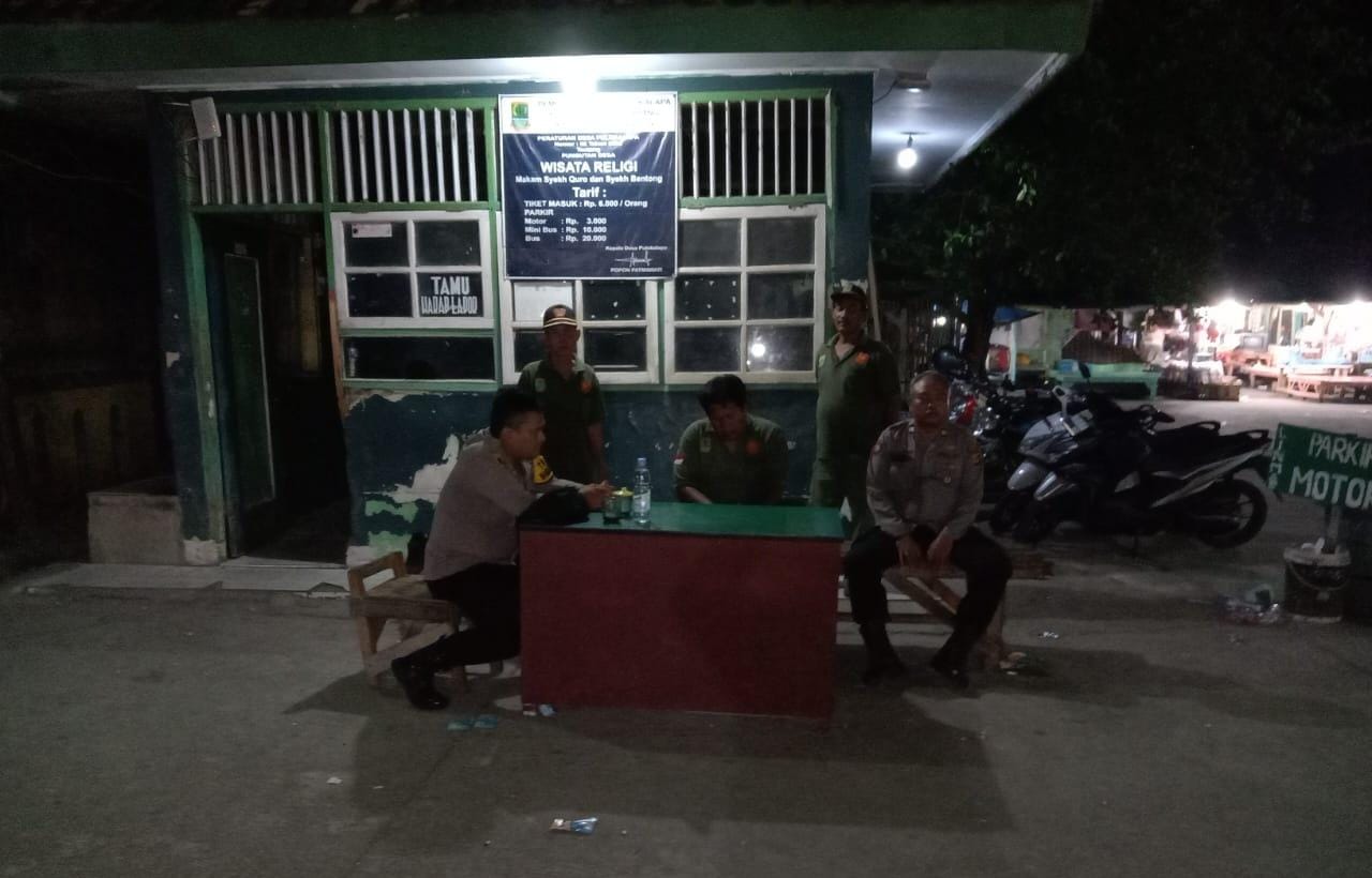Guna antisipasi tindak kejahatan di lokasi Makam Syekh Quro, Aiptu Sumitro dan Bripka Yuli Roy, selaku Piket Polsek Lemahabang Polres Karawang Polda Jabar, menggelar patroli Prekat, pada Selasa (30/5).l malam.