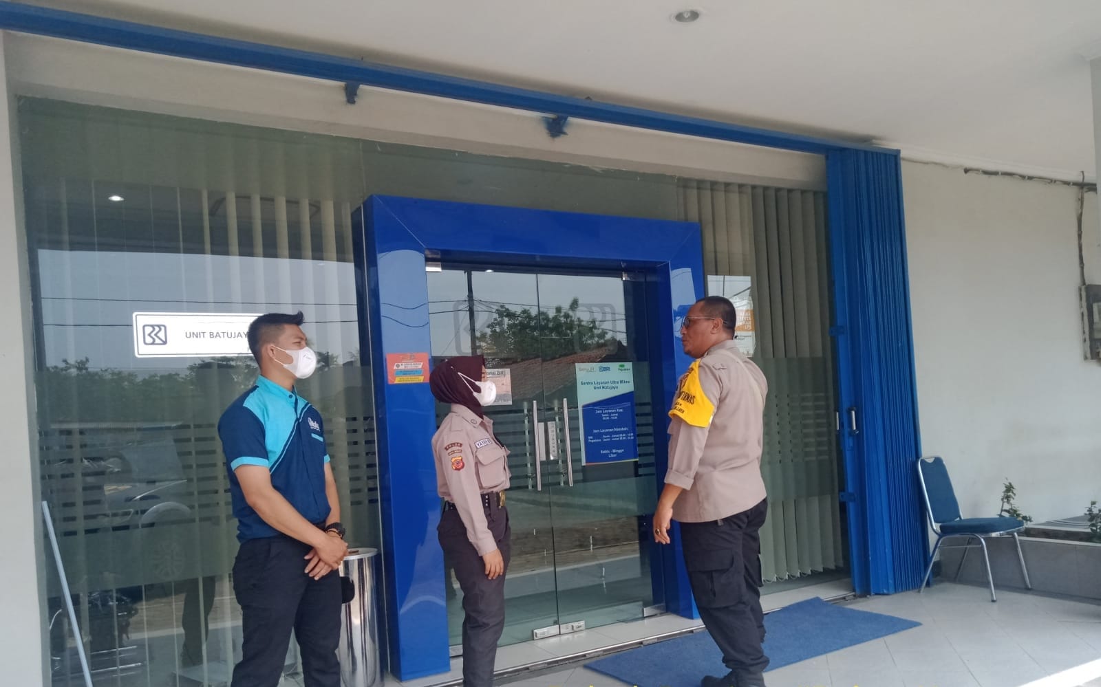 POLRES KARAWANG, – Anggota patroli presisi Polsek Batujaya Polres Karawang Aiptu Yulian Adhikusuma dan Bripka Ahmad Sanjaya antisipasi gangguan kamtibmas di lokasi perbankan, yaitu Bank BJB Unit Batujaya, Kabupaten Karawang, Kamis (1/6/2023).
