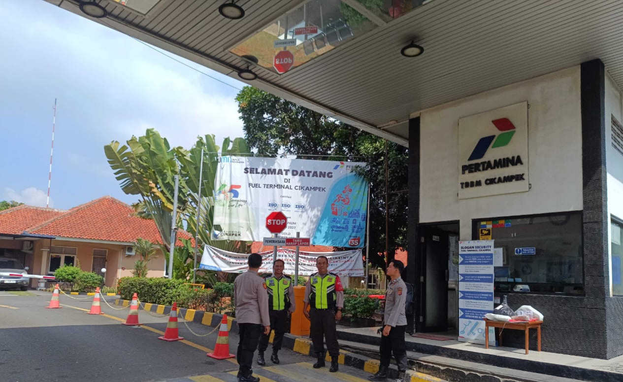 Karawang-Berikan rasa aman dan nyaman warga masyarakat termasuk Obvit Nasional sudah menjadi komitmen polri, Minggu 18/6/2023 siang hari anggota patroli prekat Połsek Cikampek Pantau depo pertamina di Desa Dawuan Barat kecamatan Cikampek Kabupaten Karawang.