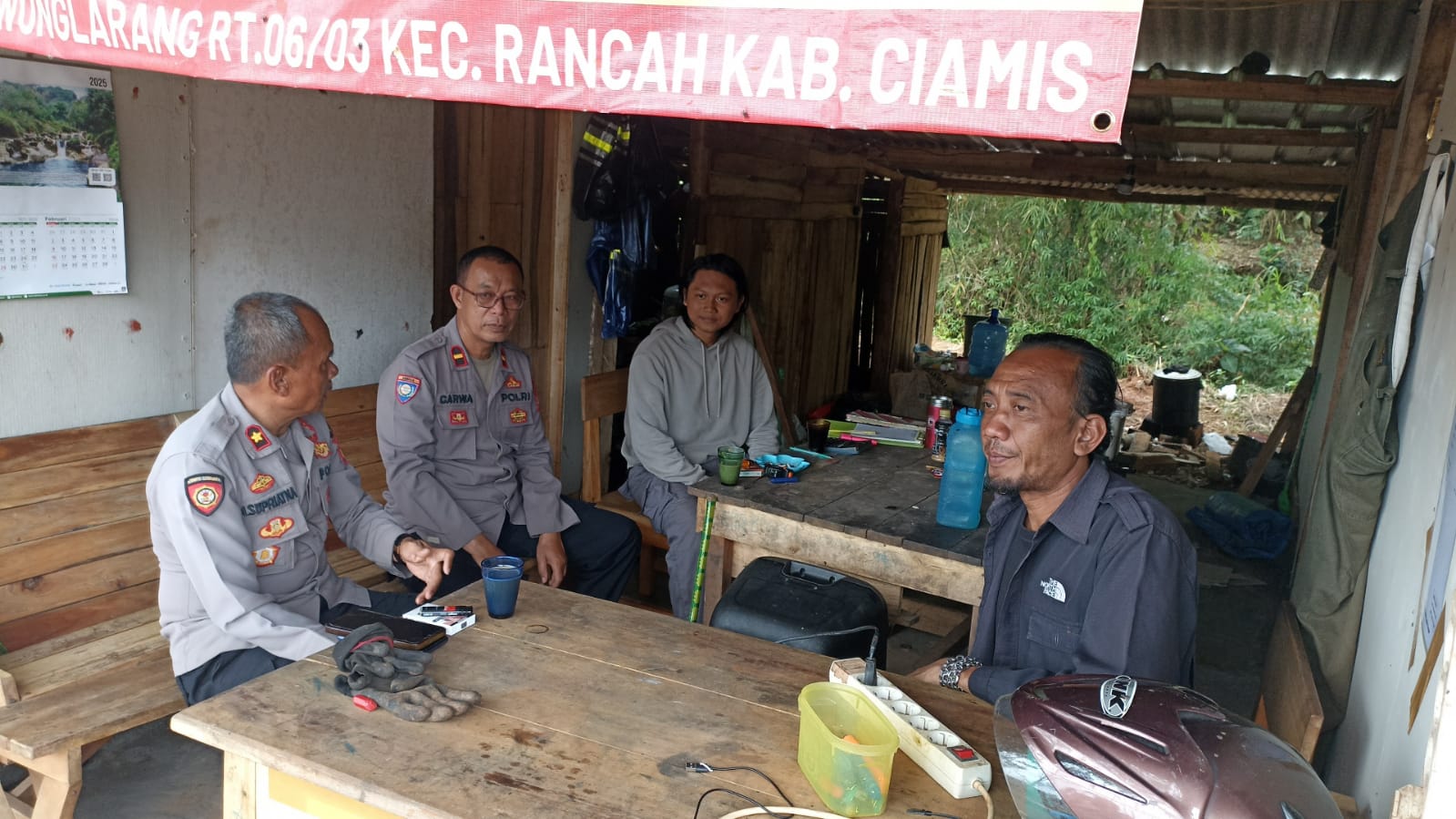 Para personel Polri melakukan koordinasi dan komunikasi dengan seluruh elemen masyarakat di Kabupaten Ciamis. Salah satunya seperti yang dilaksanakan oleh jajaran Polsek Rancah Polres Ciamis Polda Jabar dengan koordinasi dan komunikasi bersama warga masyarakat di Dusun Desa, Desa Kawunglarang, Kecamatan Rancah, Kabupaten Ciamis, Jawa Barat, Rabu (12/2/2025).