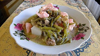 Hidangan ini kaya akan cita rasa berkat bumbu rempah yang khas serta aneka sayuran seperti labu siam, buncis, dan nangka muda.