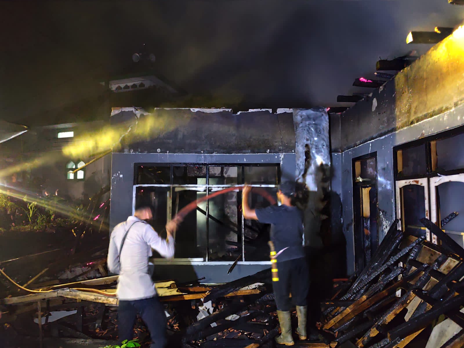 Kebakaran itu diketahui terjadi sekira pukul 18.30 WIB sepulangnya dari Masjid yang berada disebelah rumah korban. Mengetahui telah terjadi kebakaran malam kemarin, anggota langsung mendatangi lokasi kejadian. Kehadirannya sebagai bentuk kepedulian terhadap warga di wilayah desa binaannya.