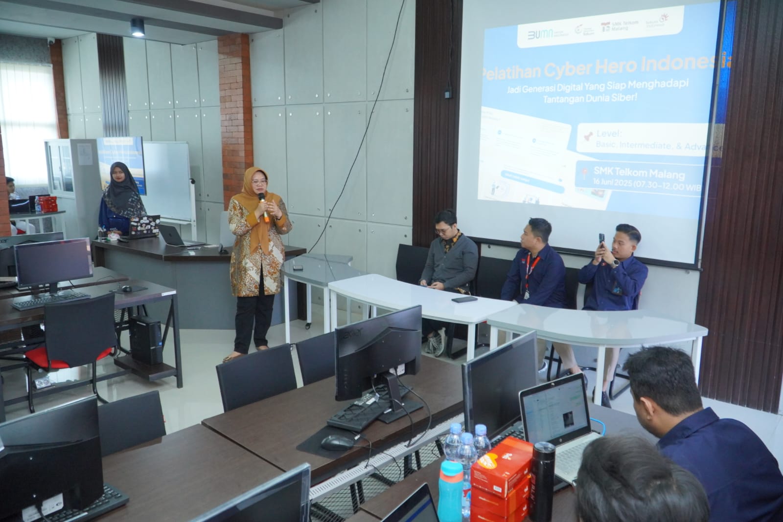 Min.co.id ~ Malang ~ Di tengah ancaman dunia maya yang kian kompleks, Pelatihan Cyber Hero Level Advance bertajuk “Threat Detection and Incident Response” resmi digelar di SMK Telkom Malang, Senin (6/6/2025). Kegiatan ini menjadi bagian dari langkah strategis memperkuat ketahanan siber nasional sekaligus mencetak talenta digital unggul yang siap menghadapi tantangan keamanan informasi masa kini.