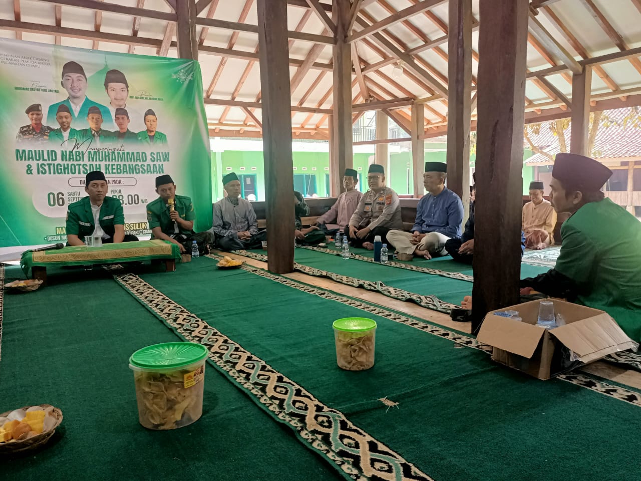 CIAMIS ~ Jajaran Polsek Cipaku Polres Ciamis Polda Jawa Barat menghadiri istigosah dan doa bersama untuk Bangsa Indonesia. Acara ini sekaligus peringatan Maulid Nabi Muhammad SAW 1447 Hijriyah. Kegiatan ini berlangsung di Dusun Munjul, Desa Buniseuri, Kecamatan Cipaku, Kabupaten Ciamis, Jawa Barat, Sabtu (6/9/2025).