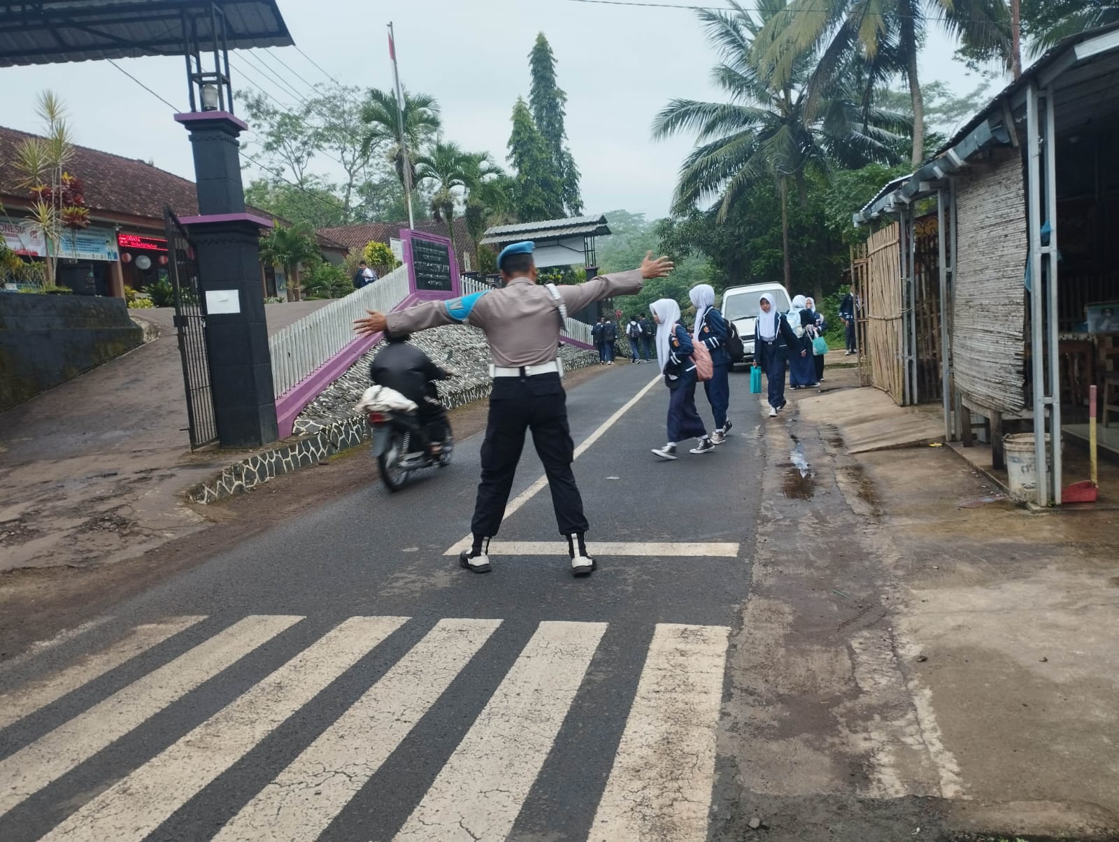 CIAMIS ~ Polsek Sukadana Polres Ciamis Polda Jabar melaksanakan kegiatan pelayanan masyarakat di pagi hari berupa pengaturan arus lalu lintas dengan sasaran anak sekolah. Kegiatan ini dilaksanakan Jalan Raya Padat Aktifitas Warga di Depan SMPN 1 Sukadana dan Perempatan Ciliat, Kecamatan Sukadana, Kabupaten Ciamis, Jawa Barat, Kamis (2/10/2025).