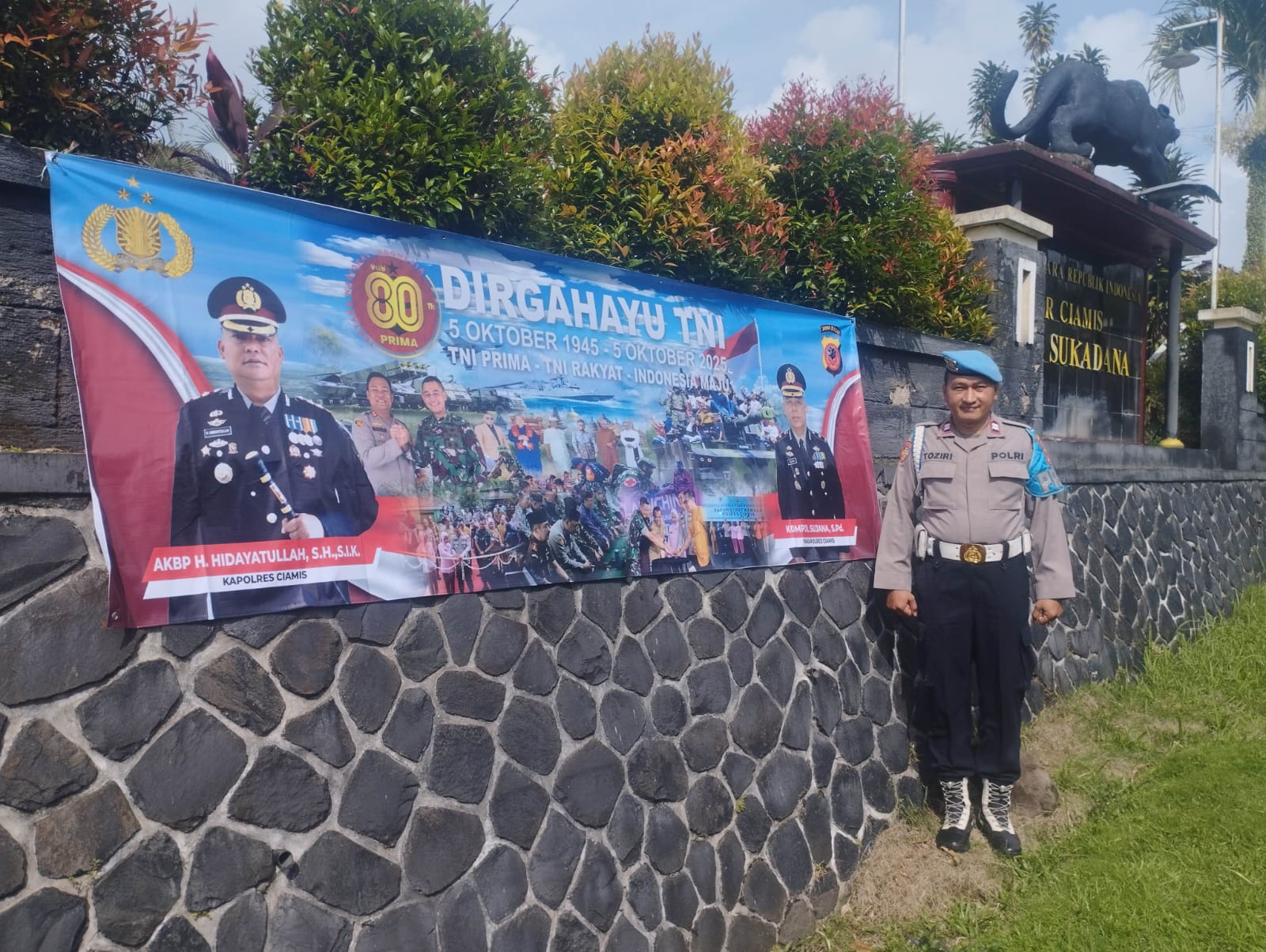 Seperti pada momentum menyambut Hari Ulang Tahun ke 80 Tentara Nasional Indonesia Tahun 2025. Sesama aparat keamanan, seluruh jajaran Kepolisian Negara Republik Indonesia memberikan ucapan selamat kepada jajaran TNI di seluruh wilayah Indonesia. Tak terkecuali jajaran Polres Ciamis Polda Jabar, dimana seluruh Satuan Fungsi dan Polsek jajaran serempak memberikan ucapan Selamat HUT ke-80 TNI.