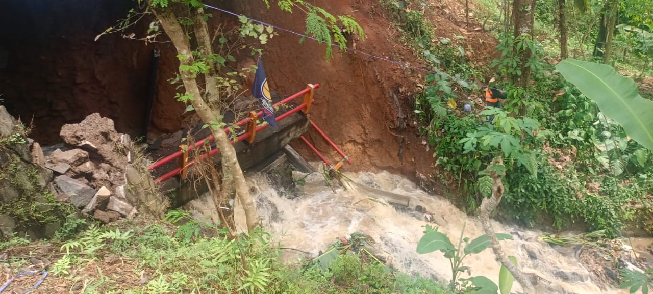 Kabid Humas Polda Jabar Kombes Pol. Hendra Rochmawan, S.I.K., M.H., menjelaskan bahwa bencana itu bermula dari laporan warga yang melihat retakan di sekitar jembatan. Hanya selang beberapa waktu, dentuman keras terdengar dari arah sungai — tanda tanah mulai ambruk. “Beruntung tak ada korban jiwa. Tapi kerusakannya cukup signifikan,” ungkapnya.