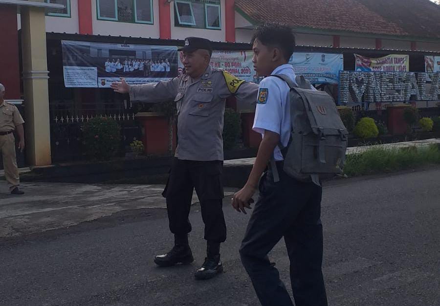 Di depan SMPN 1 Lakbok, sosok Aiptu Ujang Ruhyana berdiri tegak dengan rompi lantas yang memantulkan cahaya matahari pagi. Dengan gerakan tangan yang tegas namun ramah, ia membantu para pelajar menyeberang, memastikan tidak satu pun terjebak bahaya di jalan yang dikenal padat dan rawan kecelakaan itu.