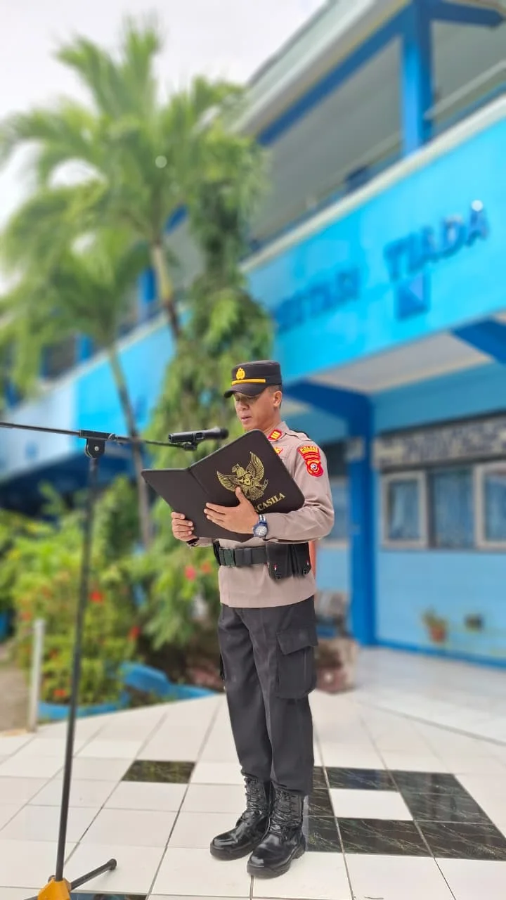 Kasie Humas Polres Indramayu, AKP Tarno, S.H., hadir mewakili Kapolres Indramayu AKBP Mochamad Fajar Gemilang dalam kegiatan pembinaan rutin yang digelar setiap hari Senin. Kehadiran Polri ini menjadi bagian dari upaya mendekatkan aparat keamanan dengan dunia pendidikan sekaligus menanamkan nilai-nilai karakter sejak dini.
