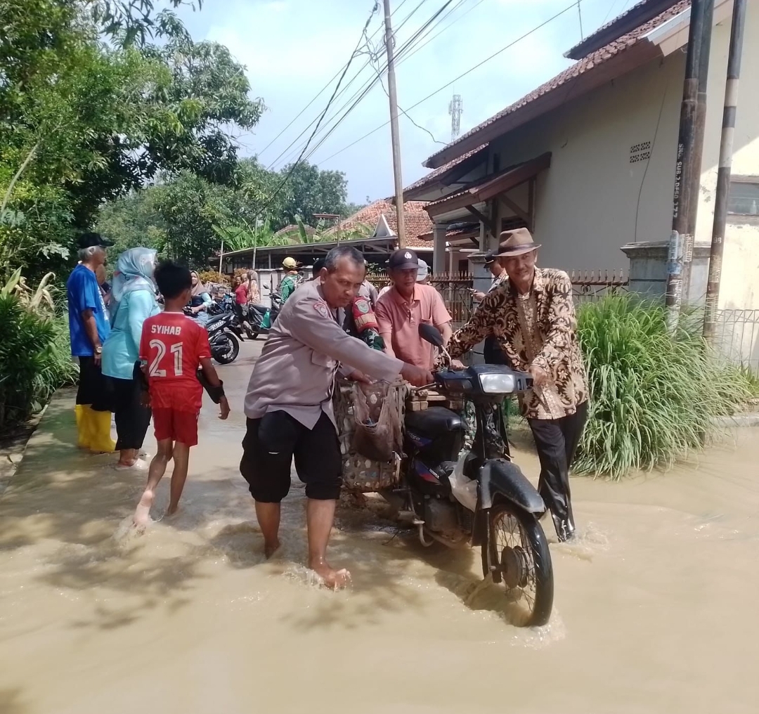 Selain melakukan pemantauan, personel kepolisian juga membantu warga terdampak serta memastikan kondisi lingkungan tetap aman. Koordinasi intensif terus dilakukan dengan aparat desa guna mengantisipasi kemungkinan luapan susulan.