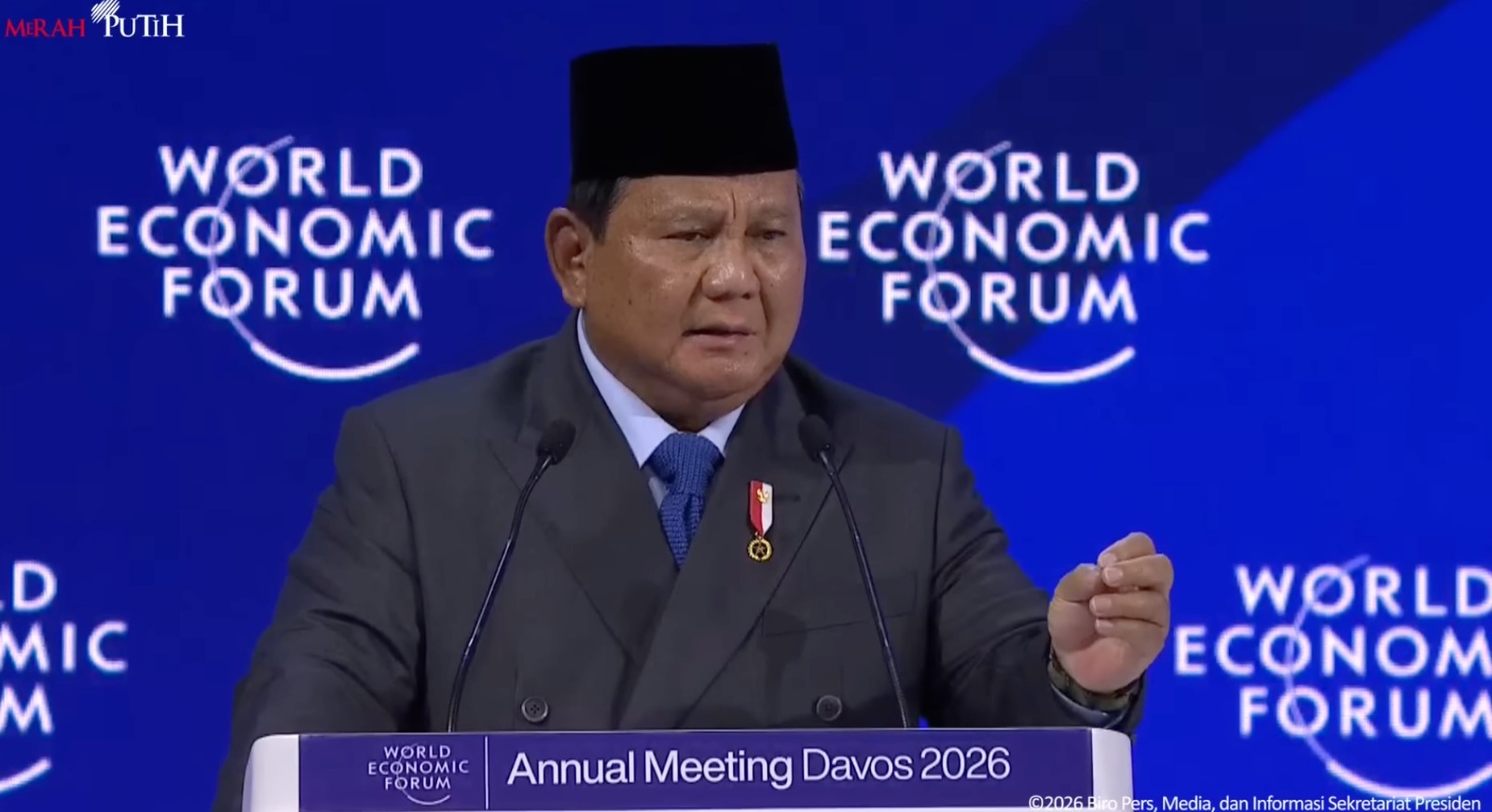 “Kami percaya pertumbuhan membutuhkan sektor swasta yang dinamis, stabilitas politik, dan kepastian hukum. Indonesia sekarang dan selamanya terbuka bagi investasi, baik asing maupun domestik,” kata Prabowo.