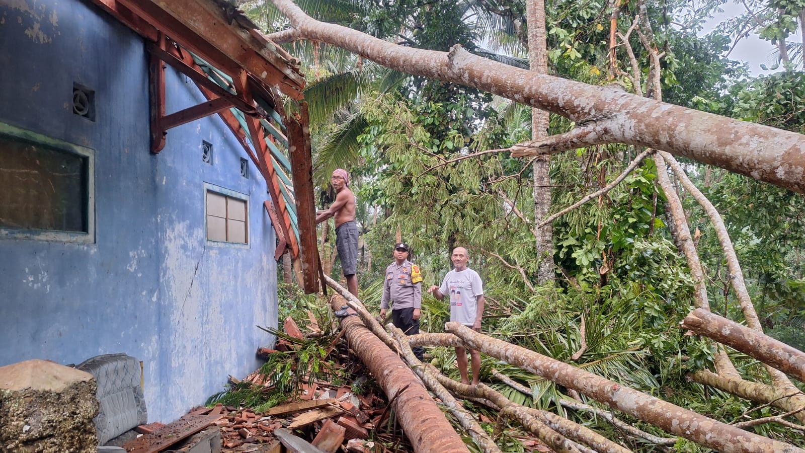 Mengetahui peristiw itu, Anggota Polsek Sukadana Polres Ciamis Polda Jabar bergegas mendatangi TKP setelah mendapatkan informasi dari masyarakat. Mereka hadir dan membantu proses penanggulangan bencana alam pohon tumbang menimpa bagian rumah warga.