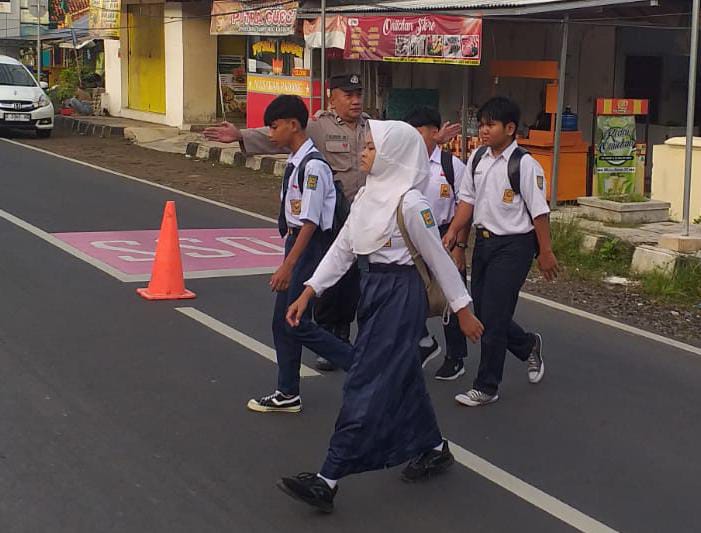 Kegiatan ini dilaksanakan oleh personel Polsek Lakbok, yakni AIPTU Ujang Ruhyana, yang secara langsung turun ke lapangan untuk melakukan pengaturan lalu lintas sekaligus membantu penyeberangan para pelajar dan masyarakat yang melintas di kawasan tersebut.