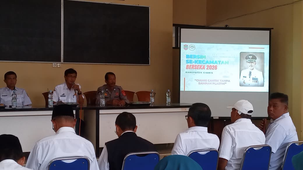 CIAMIS ~ Personel Polsek Pamarican Polres Ciamis Polda Jabar menghadiri kegiatan pembinaan bersih se kecamatan (Berkaca). Pembinaan tersebut disampaikan oleh Dinas Perumahan Rakyat, Kawasan Pemukiman dan Lingkungan Hidup Kabupaten Ciamis. Kegiatan berlangsung di Aula Kantor Kecamatan Pamarican, Kabupaten Ciamis, Kamis (23/4/2026).